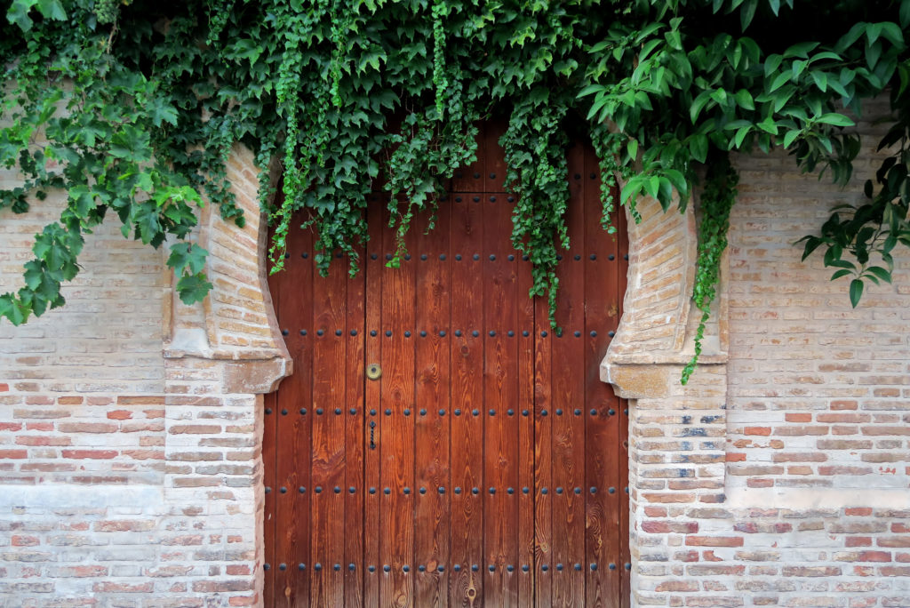 Arab door full of vegetation of an old house